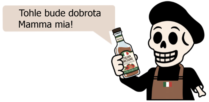 - Salát: začni 1–2 lžícemi dresinku, promíchej, ochutnej. Listy mají být obalené, ne „utopené“.