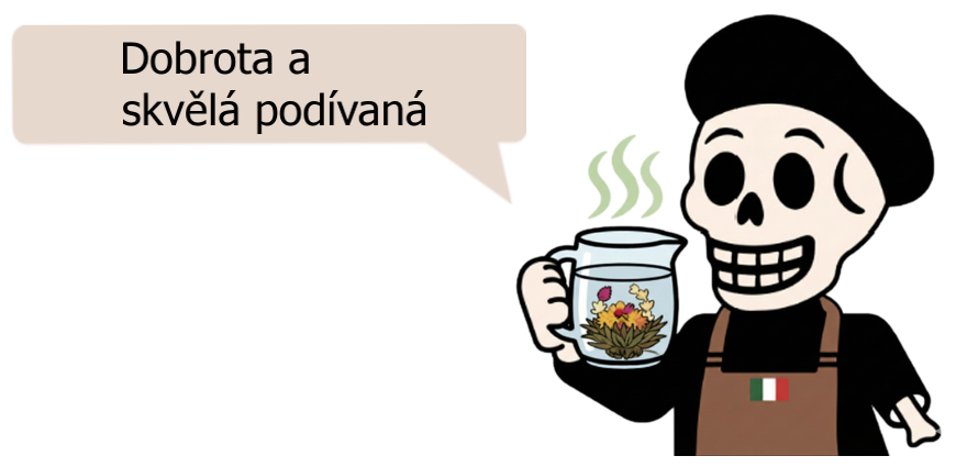 Jsem Kafista – srdcem barista, duší romantik. A když přijde řeč na kvetoucí čaj? Tak to se mi rozzáří i moje prázdné oční důlky. Tahle čajová paráda není jen o chuti – je to zážitek! Z nenápadné kuličky se ve vodě rozvine květina jak z pohádky. A ty jen sedíš, koukáš a pomalu se ti zklidňuje tep (i když ho teda jako kostlivec nemám).