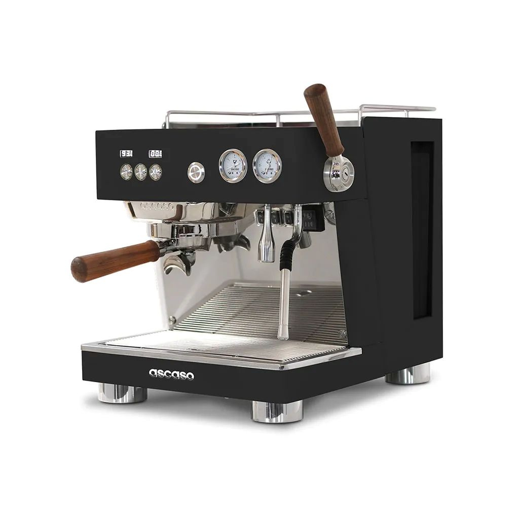 Tohle není hračka pro začátečníky. To je Ascaso Baby T Plus. Když ho budeš vybalovat, vezmi si na pomoc kamaráda, protože těch 35 kg hmotnosti ti jasne řekne, že tady se na materiálu nešetřilo. Je to zmenšenina velkého baristického stroje, která ti dovolí dělat doma psí kusy. Černá matná úprava vypadá "k smrti dobře", ale to hlavní se skrývá pod kapotou: rotační čerpadlo a možnost připojení přímo na vodovodní řád.