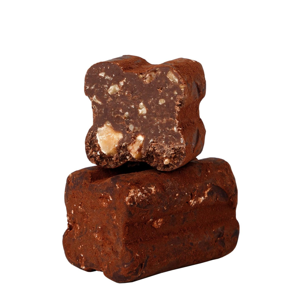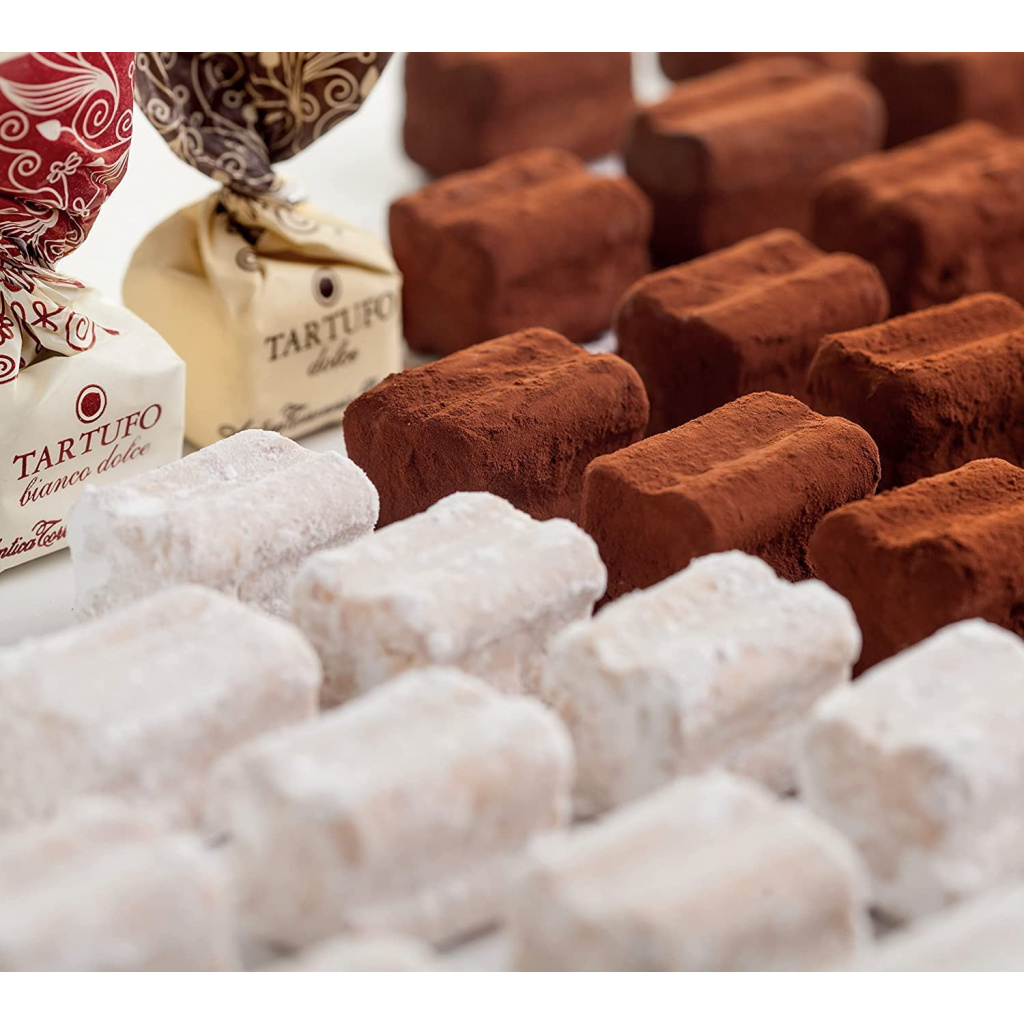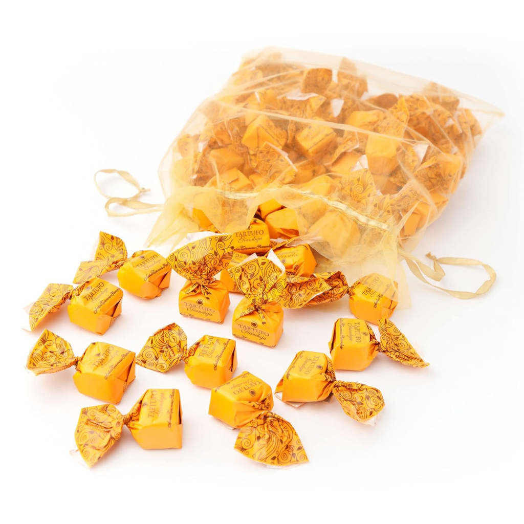 Objevte ikonickou kombinaci čokolády a lískových ořechů z Piemontu: Tartufini dolci Gianduja jsou drobné, einzeln balené čokoládové lanýže, které spojují mléčnou čokoládu a gianduju do dokonale hladké, krémové chuti. Díky vysokému podílu piemontských lískových ořechů (48 %) mají lanýže výjimečně plné aroma s tóny pražených oříšků a kakaa. Hodí se jako malá radost ke kávě, do klientských balíčků, na firemní recepci i jako prémiový snack pro hosty. Každý kousek váží přibližně 7–8 g.