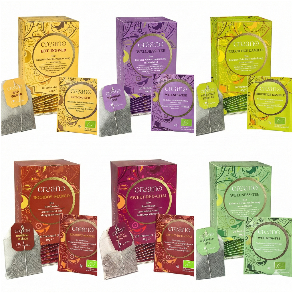 Sada obsahuje 6 plných balení (6 x 20 sáčků) prémiových Bio čajů:
