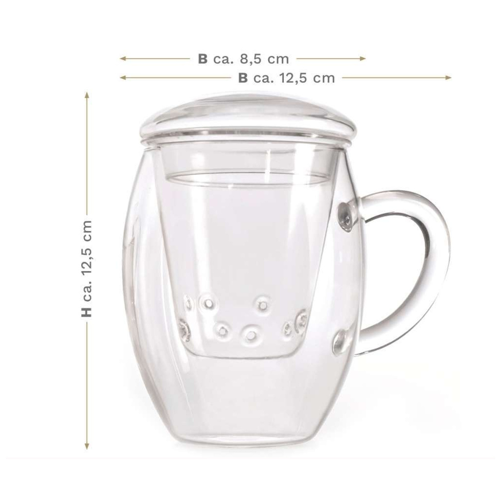 Creano čajový hrnek „All-In-One“ se skleněným filtrem – 3dílná sada, 400 ml (1ks)