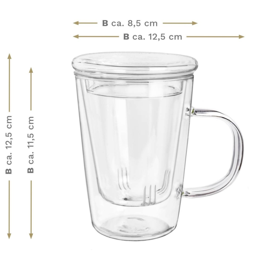 | Součásti balení | 1x skleněný hrnek, 1x skleněné sítko, 1x skleněné víčko |