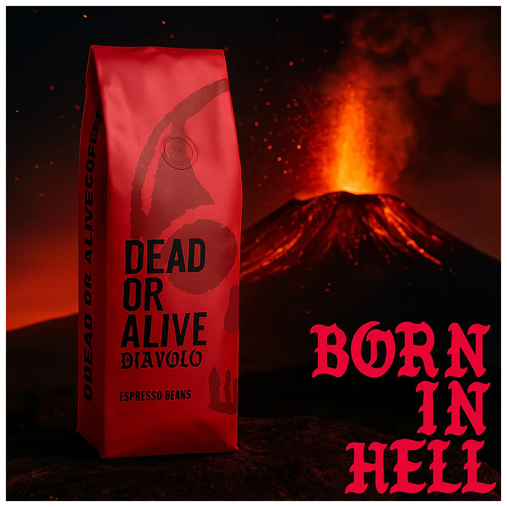 Dead or Alive Coffee Diavolo je espresso, které si nehraje na jemnost. Je postavené na 100% robustních zrnách a pražené do extra tmava, aby vznikla káva s výrazným charakterem: plná, intenzivní, výrazně pražená – přesně taková, jakou chceš, když hledáš silnou kávu bez kompromisů.