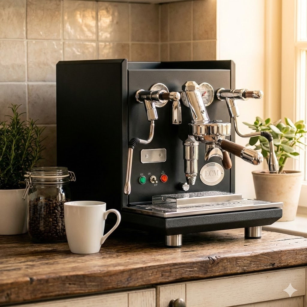Německá značka ECM posunula svou vlajkovou loď na novou úroveň. Edice Dark Walnut kombinuje industriální surovost antracitového kovu s hřejivou texturou ořechového dřeva. My v Kafistovi věříme, že káva je o emocích, a tenhle stroj jich vyvolává víc než dost. Je to k smrti dobrá kombinace síly, ticha a elegance.