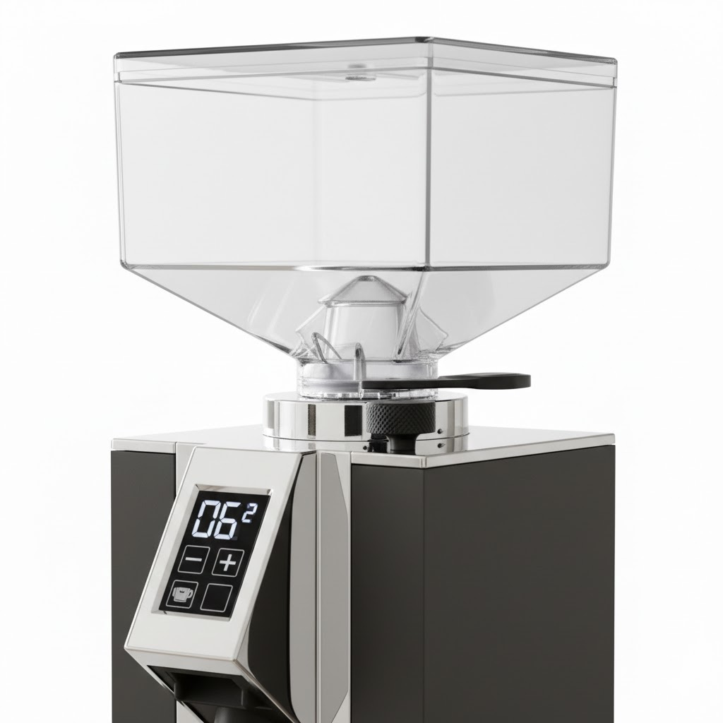 Specialita není jen název, je to definice. Tento mlýnek byl navržen speciálně pro náročné domácí baristy, kteří chtějí z kávy dostat maximum, ale nechtějí mít v kuchyni obří monstrum. Antracitová barva působí moderně, technicky a na rozdíl od černé na ní není vidět každé zrnko prachu. Uvnitř tepe silný motor a patentovaný systém mikrometrického nastavení, který je tak přesný, že by s ním šlo operovat.
