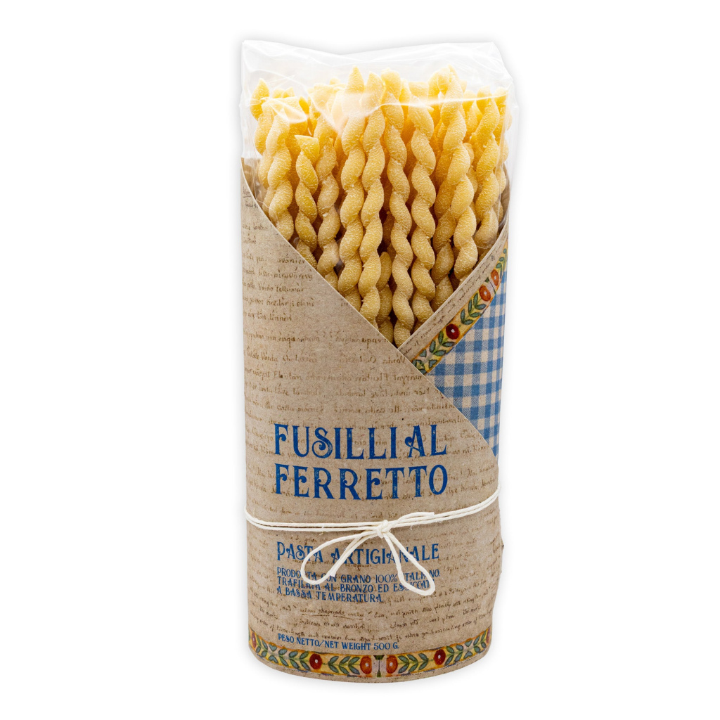 Fusilli al Ferretto patří mezi nejtypičtější tvary jihu Itálie. Název odkazuje na techniku, kdy se proužek těsta ručně stáčí kolem tenké kovové tyčky – „ferretto“. Výsledkem je duté, spirálovitě kroucené tělo s přirozeně porézním povrchem, které nasaje omáčku dovnitř i na povrch a každému soustu dá plnost a šťavnatost.