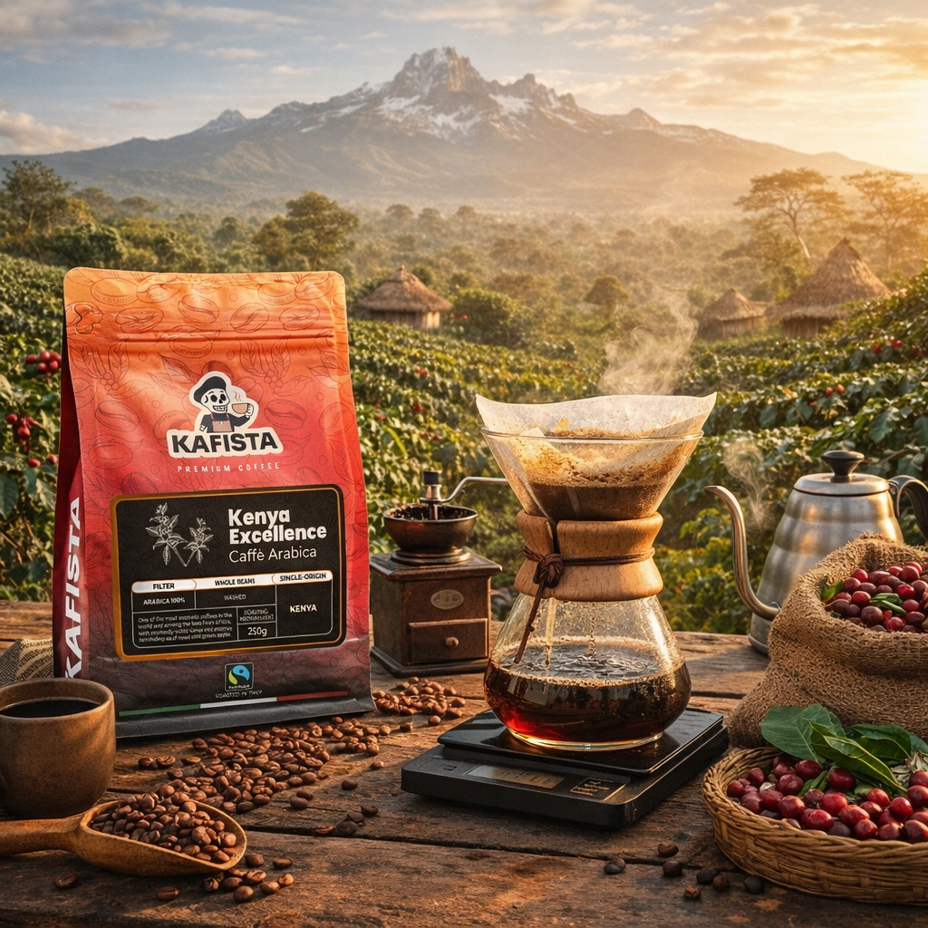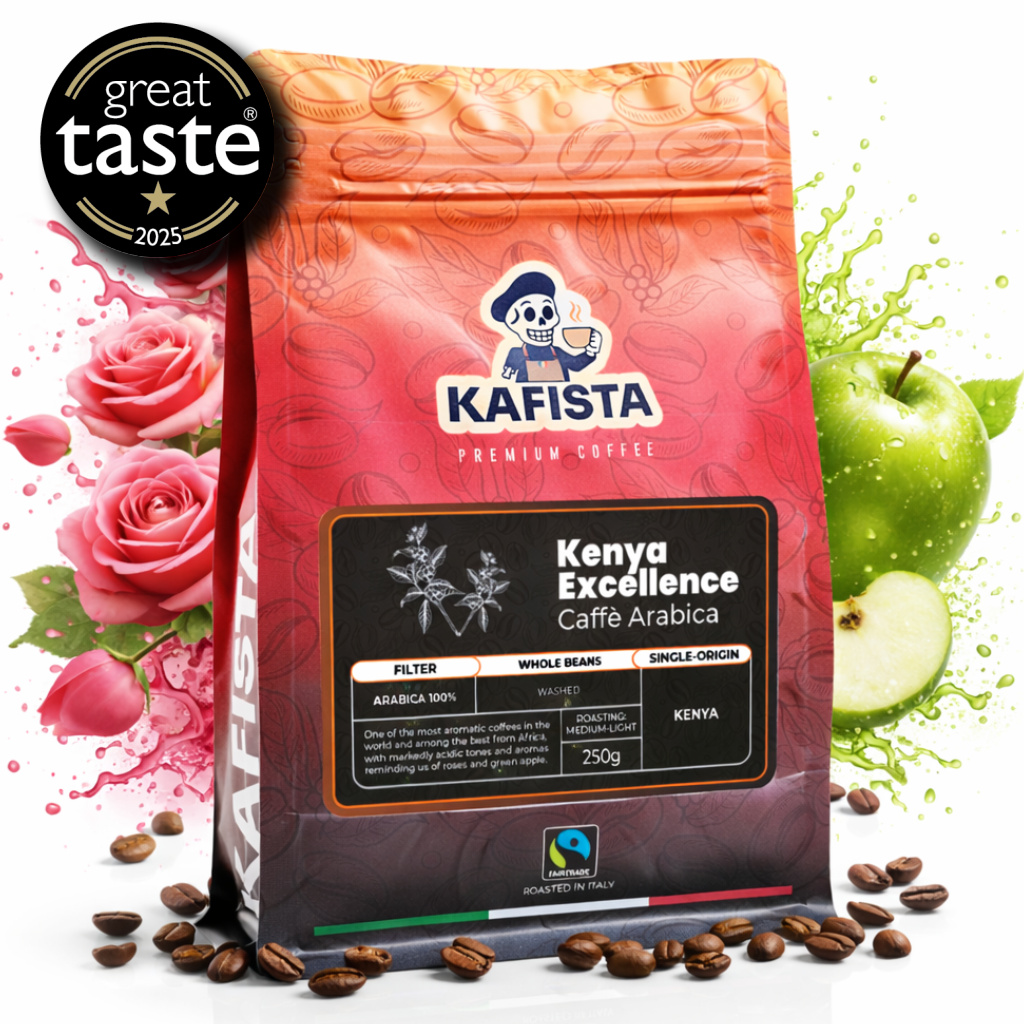 Kafista "Kenya Excellence" - Zrnková káva, 100% Arabica Single Káva, Pražená v Itálii - perfektní pro filtrovanou kávu