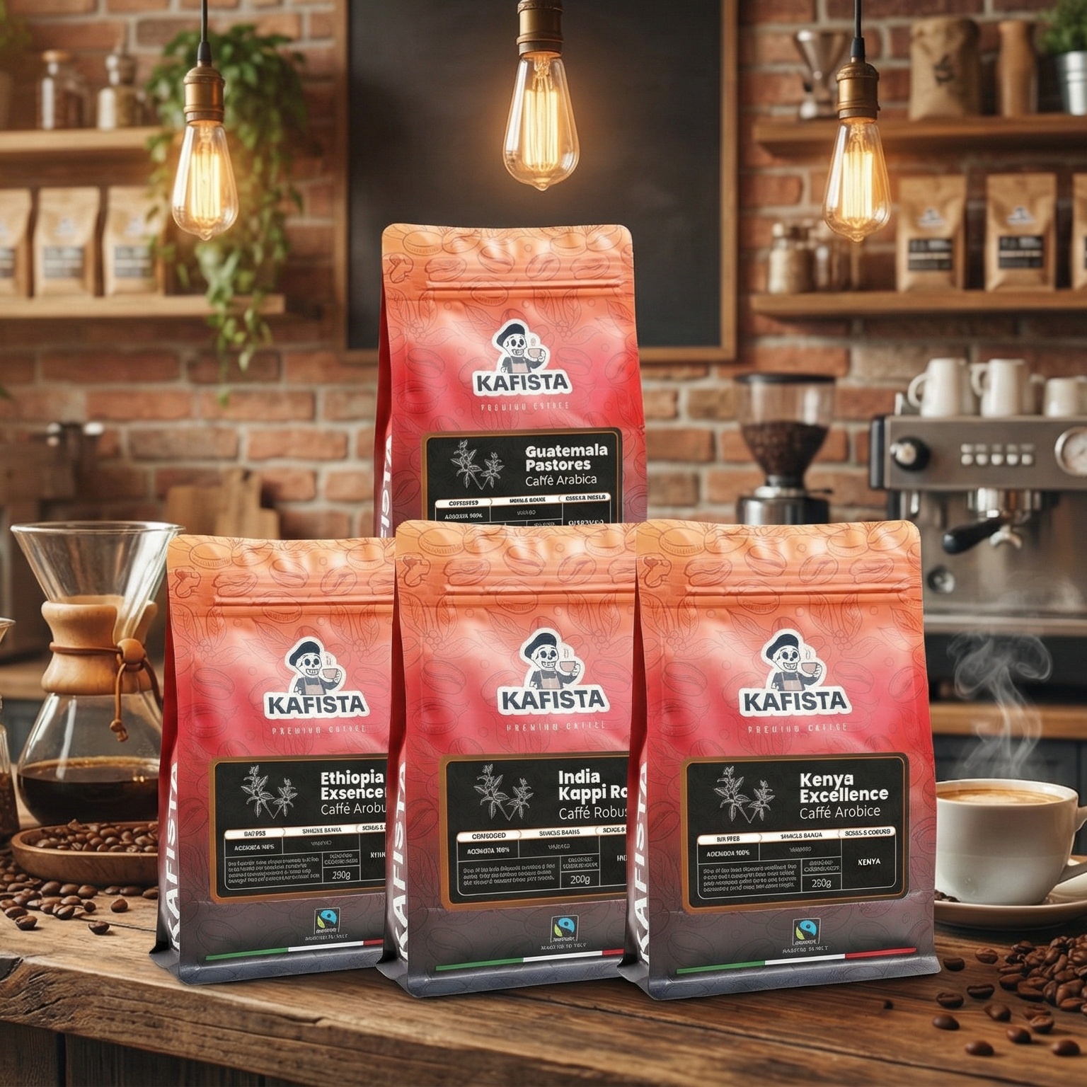 Kafista balíček 4x250g - Single origin kávy pražené v Itálii, zrnková káva Fiartrade