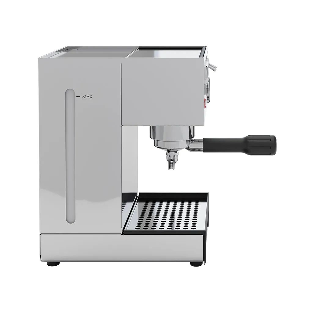 Modelová řada Anna je základním kamenem značky Lelit, ale verze TEM ji posouvá na úplně jinou úroveň. Zkratka TEM znamená, že máš k dispozici vše, co potřebuješ: Teploměr (PID), Manometr a robustní konstrukci. Uvnitř bije mosazné srdce (bojler 250 ml), které drží teplotu stabilněji než hliník. Páčkové přepínače jsou příjemně tuhé a dávají ti ten správný "retro-tech" pocit, že ovládáš poctivý stroj, ne mikrovlnku.
