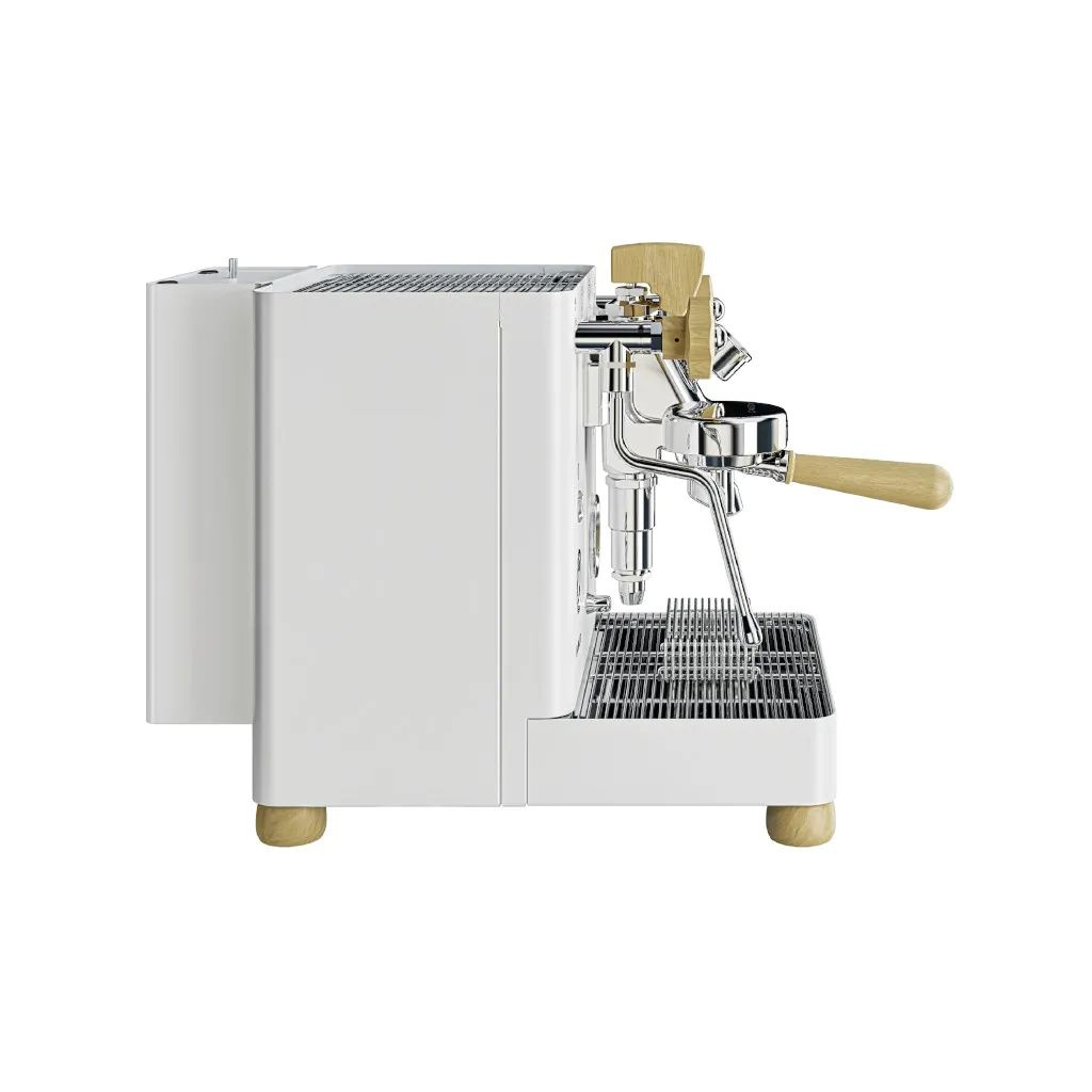 Lelit Bianca je vybavena legendární hlavou E61, rotačním čerpadlem, které je tiché jako hrob, a duálním bojlerem s PID regulací. To znamená, že teplota vody je stabilní jako skála, ať už děláš jedno espresso nebo deset cappuccin pro celou rodinu[cite: 326]. Navíc má Bianca unikátní zásobník na vodu, který můžeš umístit na tři různé strany kávovaru, nebo ho úplně sundat a připojit stroj přímo na vodovod.