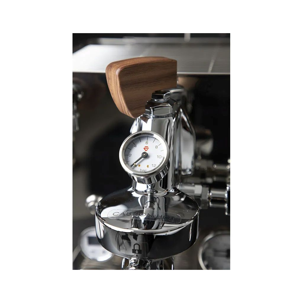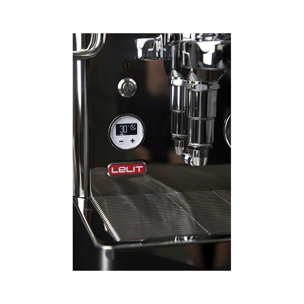 Lelit Control Center (LCC) je mozek stroje. Nejenže hlídá teplotu obou bojlerů (PID), ale funguje i jako stopky (shottimer) a umožňuje nastavit automatickou preinfuzi nebo "low flow" start. Vše v elegantním kulatém designu.