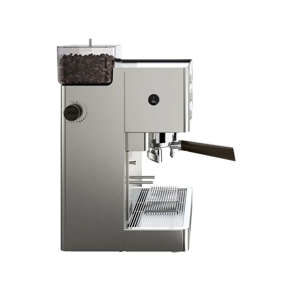 Žádné další kabely na lince. Vestavěný mlýnek má kónické kameny a plynulé (mikrometrické) nastavení hrubosti. Čerstvě namletá káva padá přímo do páky. Čisté, rychlé, efektivní.