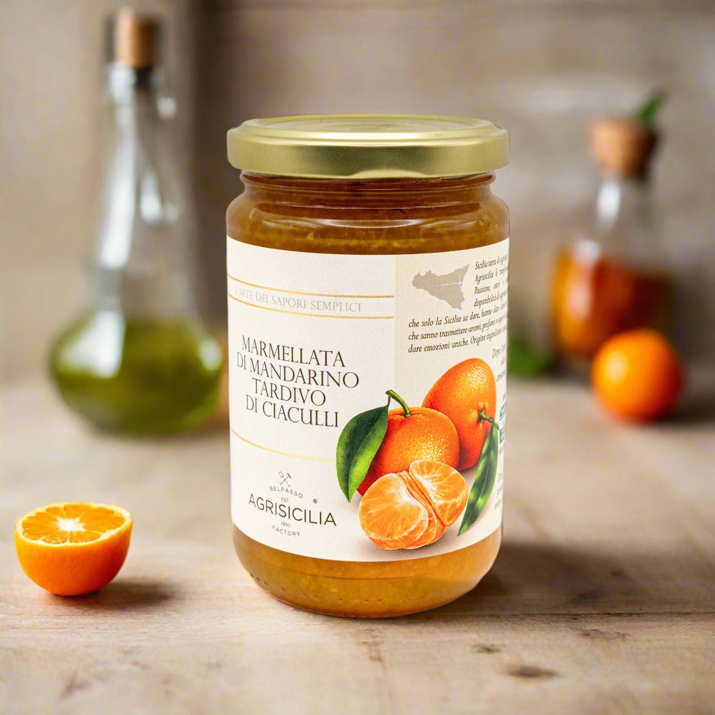 Marmeláda ze sicilských mandarinek (360g) je připravena z pečlivě vybraných plodů z jihu Itálie. Díky šetrnému zpracování vyniknou přirozené aroma a čistá chuť ovoce – bez zbytečných přísad.