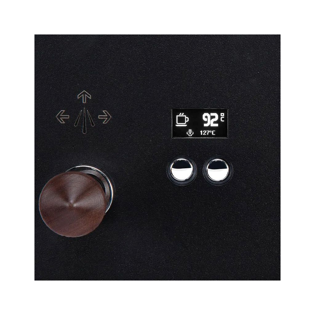 - Diskrétní displej: Slouží jako PID regulace teploty, shot timer při extrakci a upozorní tě, kdy je třeba kávovar vyčistit.