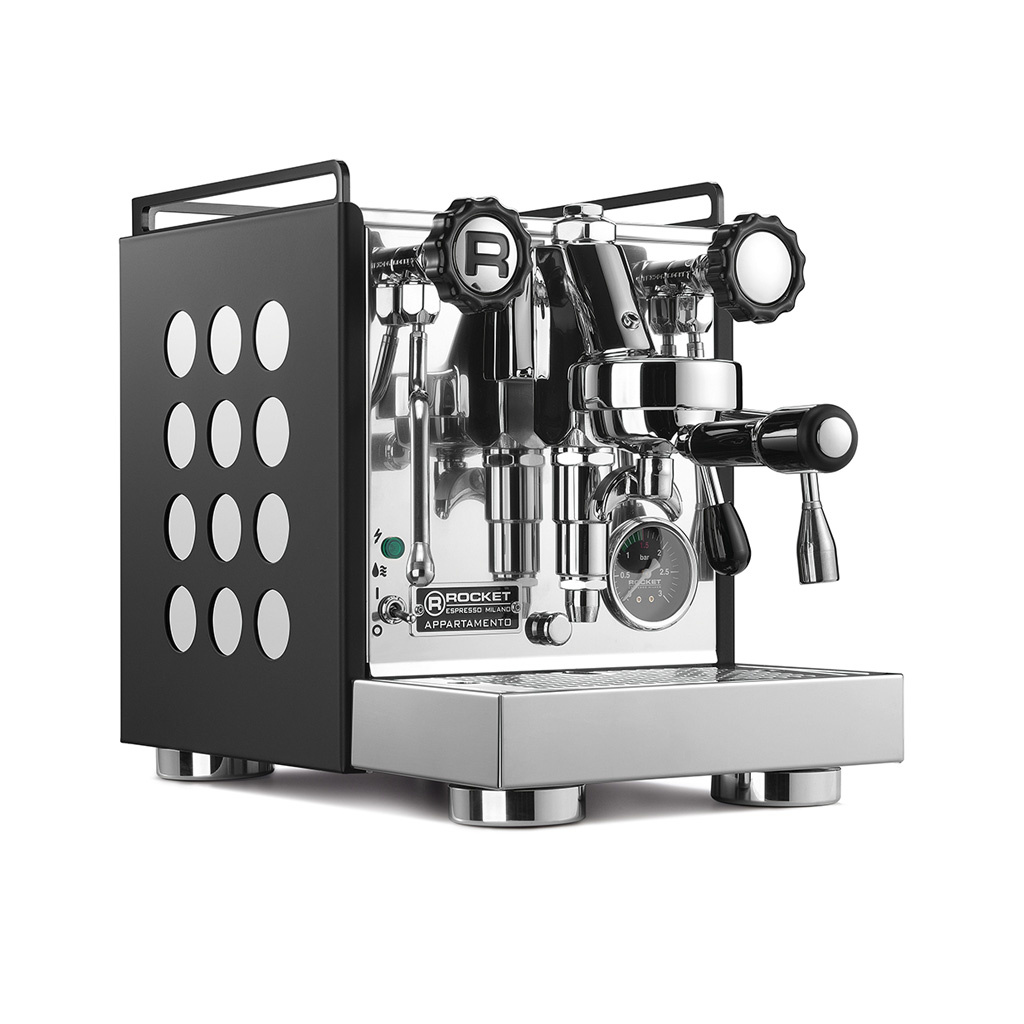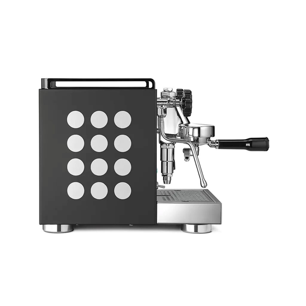 Když inženýři v Miláně kreslili Appartamento, chtěli rozbít nudu nerezových krabic. A povedlo se jim to dokonale. Varianta Black & White je asi nejvýraznější z celé řady. Matná černá pohlcuje světlo, zatímco bílé kruhy na bocích křičí do světa, že máš vkus. I když je kávovar kompaktní, uvnitř najdeš poctivý 1,8litrový měděný bojler s výměníkem, který ti zajistí nekonečný přísun páry pro tvé latté art kreace.