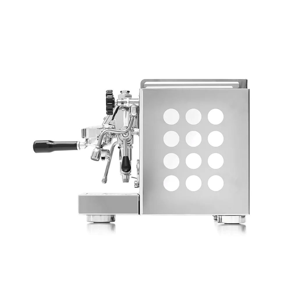 A bojler? Díky systému výměníku (HX) nemusíš přepínat žádná tlačítka mezi kávou a párou. Děláš espresso a zároveň šleháš mléko. Jako profík.
