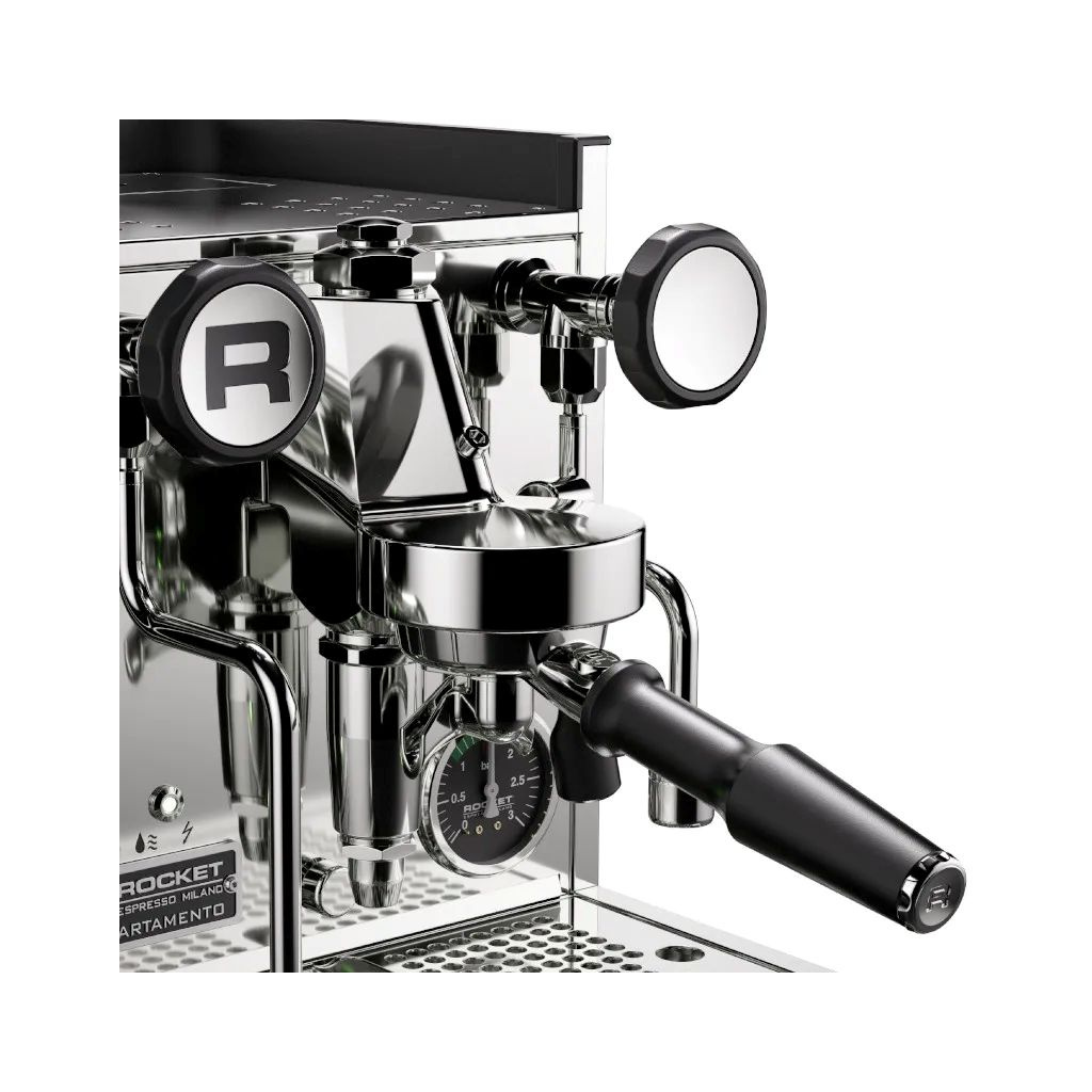 Model Appartamento TCA je evolucí legendy. Designéři v Rocket Espresso vzali to nejlepší z původního modelu – kompaktní rozměry a ikonický vzhled – a posunuli to do 21. století. Bílá verze působí v prostoru lehce a moderně. Nově tvarované boky s prolisovanými kruhy a vertikální logo na zádech dávají stroji dospělejší vzhled. Ale to hlavní se odehrálo uvnitř: starý tlakový spínač nahradila chytrá elektronika.