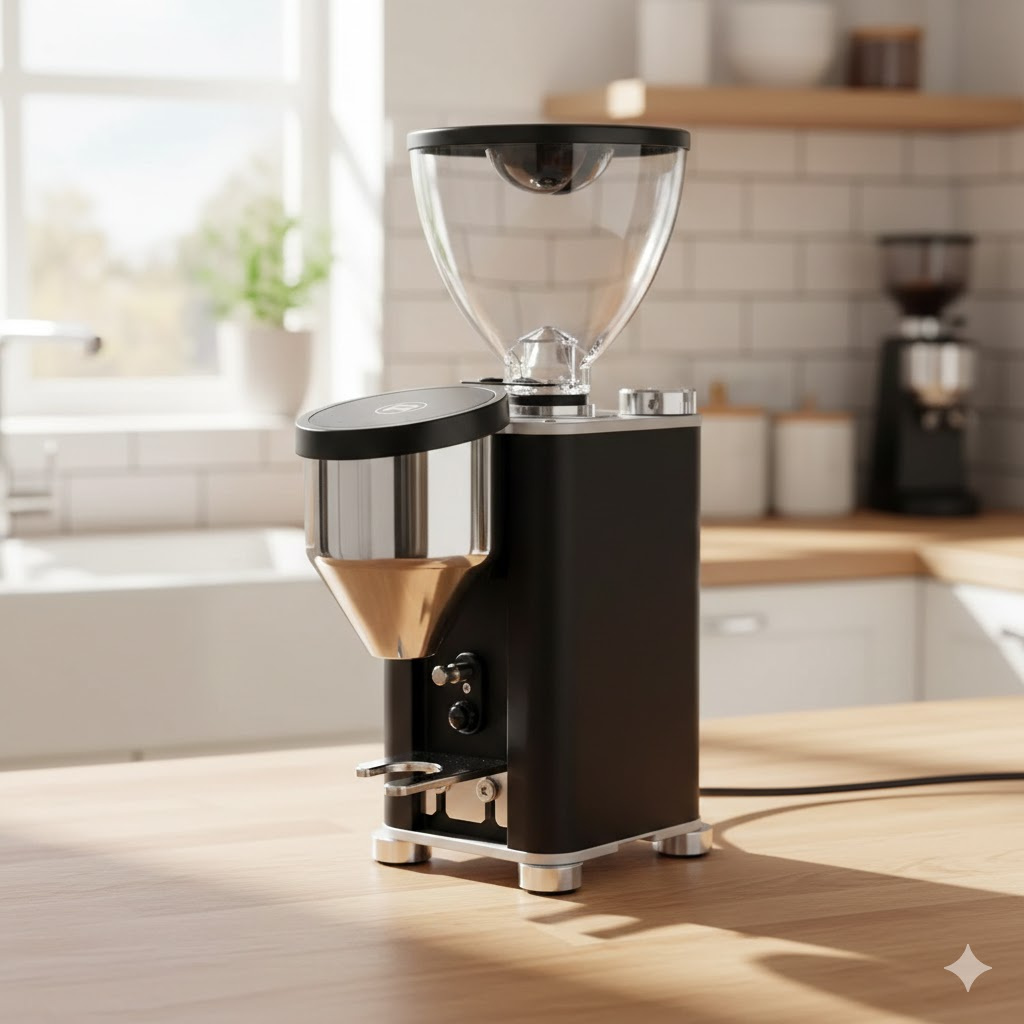 - Antistatický systém: Výsypka je navržena tak, aby eliminovala hrudkování kávy (clumping) a elektrizování. Káva padá nadýchaná přímo do středu páky.