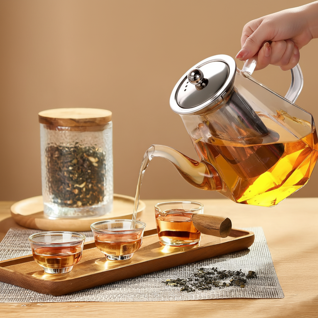 Hledáš konvici, ve které připravíš poctivý sypaný čaj bez nepořádku a s maximální chutí? STNTUS 1,2 l kombinuje čiré borosilikátové sklo pro čistou chuť nápoje a jemné nerezové sítko, které nepropustí ani drobné lístky. Díky stupnici hladiny máš množství pod kontrolou a tvarovaný výlevka zajistí nalévání bez kapek – na ubrusu zůstane sucho. Konvice je lehounká do ruky, snadno se myje a tělo může do myčky. Na sporáku (kromě indukce) si ohřeješ vodu přímo v konvici; na nízkém až středním plameni zvládne běžné čajové rituály i domácí ledový čaj s ovocem a mátou.