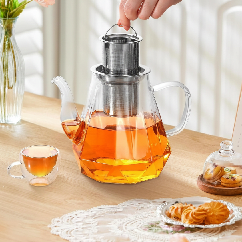 Skleněná konvice na čaj 1,2 l s nerezovým sítkem a víčkem a originálním vzhledem
