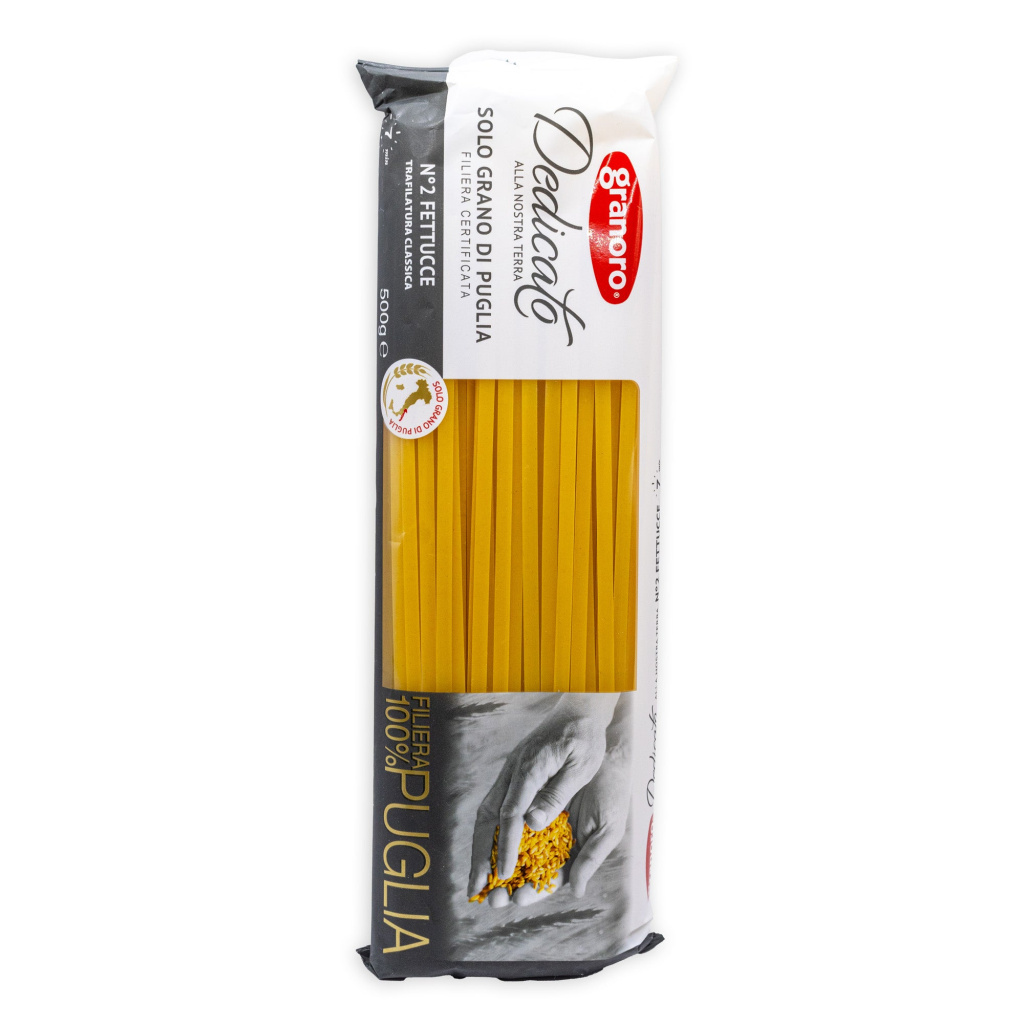 Fettucce n.2 jsou širší „sestřenicí“ tagliatelle – formát, který nechá vyniknout saténovým omáčkám i rustikálním ragú. Díky kvalitní apulské semolině drží těstoviny tvar, nelepí se a při míchání v pánvi se krásně obalí. Perfektně fungují s dlouze taženým masem, houbami na másle, ale i s lehkým bylinkovým pestem.