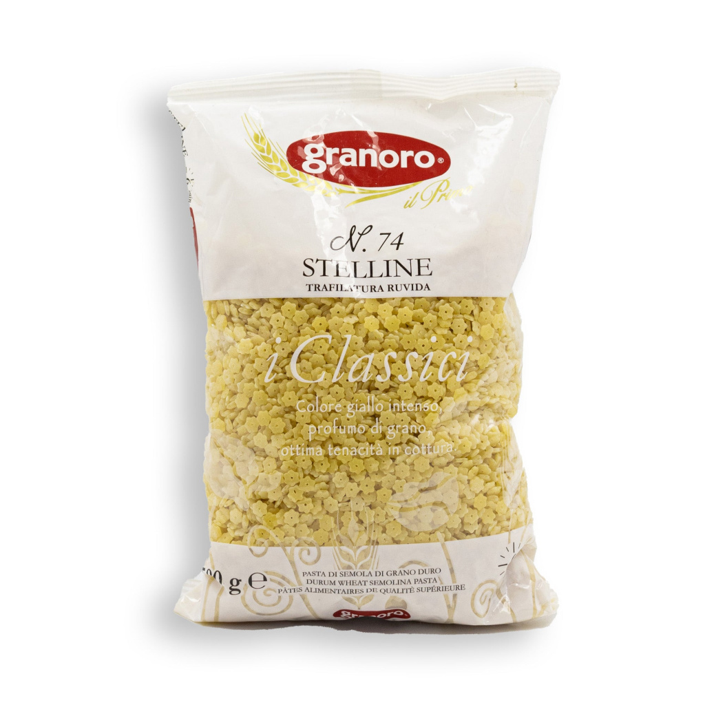 Stelline jsou drobné polévkové těstoviny, které dodají misce vývaru i dětskému talíři hravou formu a zároveň poctivou strukturu. Semolinové těsto má přirozeně porézní povrch, který naváže chuť vývaru a přitom drží pevný střed. V polévce zůstávají hvězdičky pěkně samostatné, nerozvaří se a snadno se jí lžící. Uplatní se i v těstovinových salátech, jako jemná příloha nebo základ zapékaných dětských jídel.